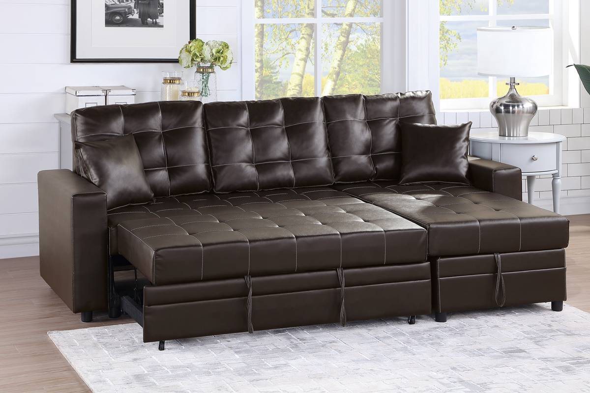 F6592 Darby Tufted 2-PC Sleeper Sectional - Brown