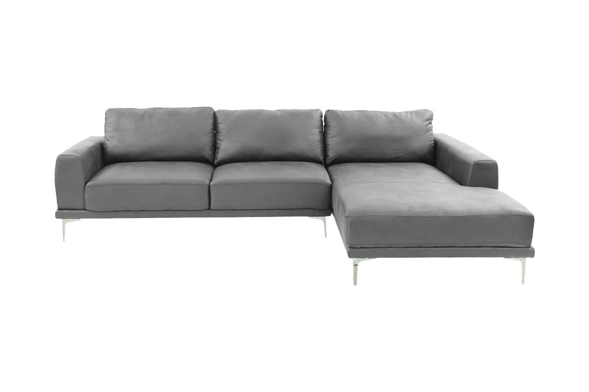This sleek sectional sofa is the perfect addition to any living room ensemble. This sectional introduces a touch of texture to your interior design, showcasing a clean-lined silhouette featuring sleek metal legs. It is upholstered with breathable leatherette, giving it a lived-in look. The wide chaise gives you extra support whenever you need some time to relax. Available in Antique Grey and Ink Blue.