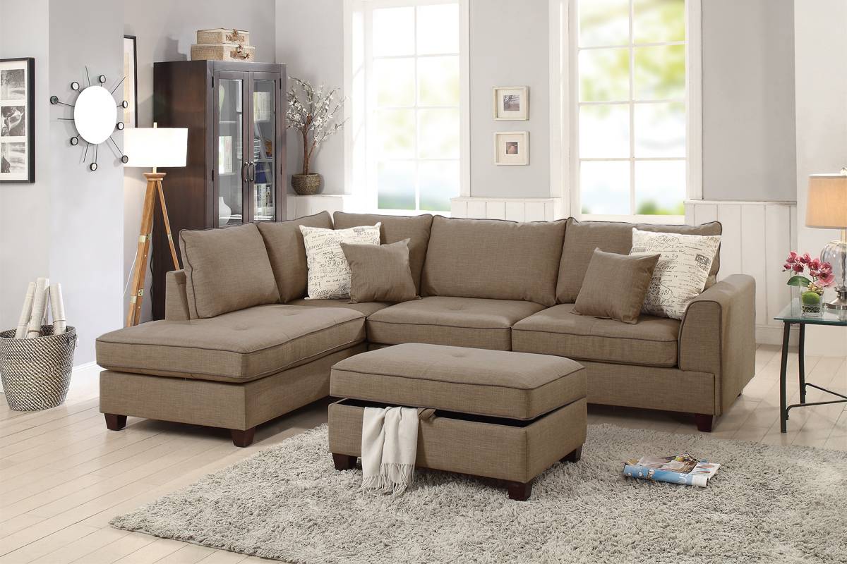 F6544 Perry 3-PC Sectional Sofa - Brown