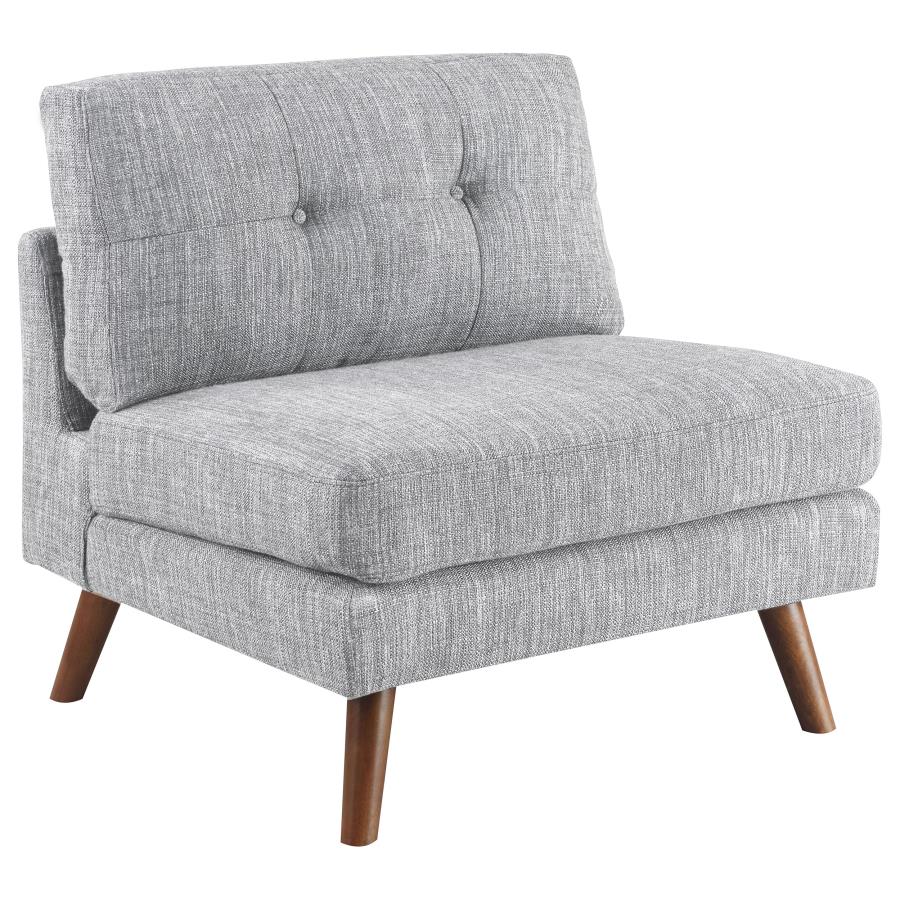 * This mid-century modern collection boasts clean lines in cool grey linen-like fabric