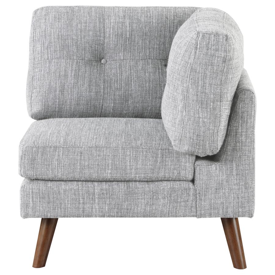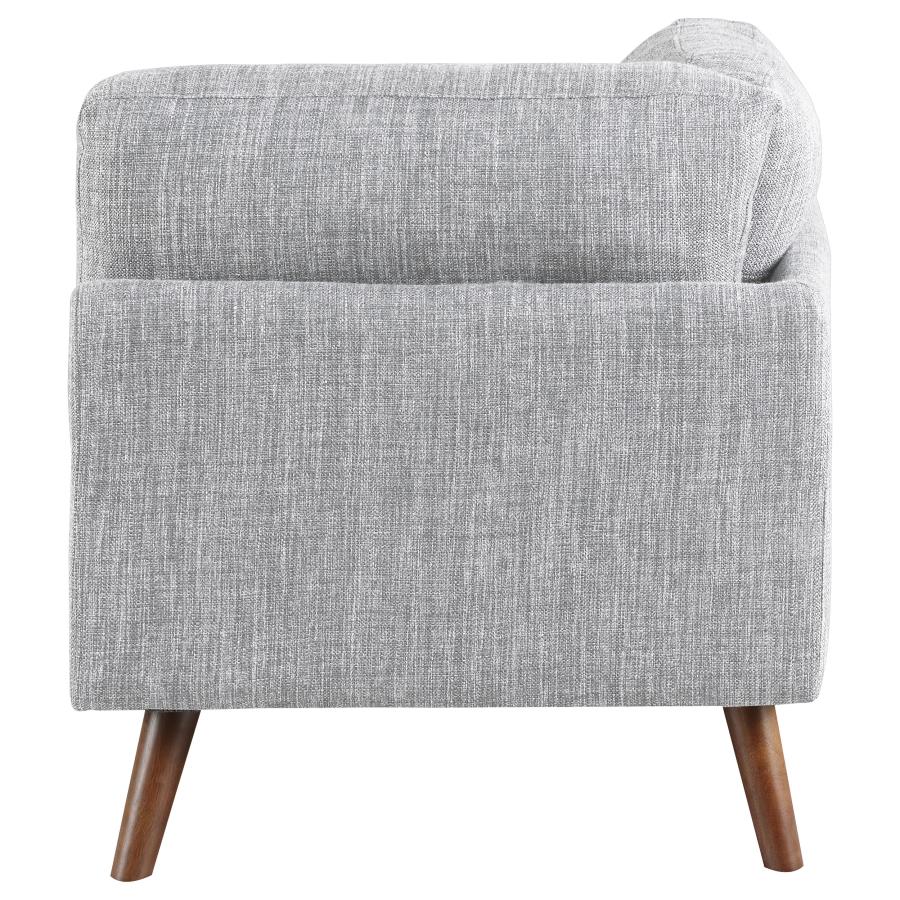 * This mid-century modern collection boasts clean lines in cool grey linen-like fabric