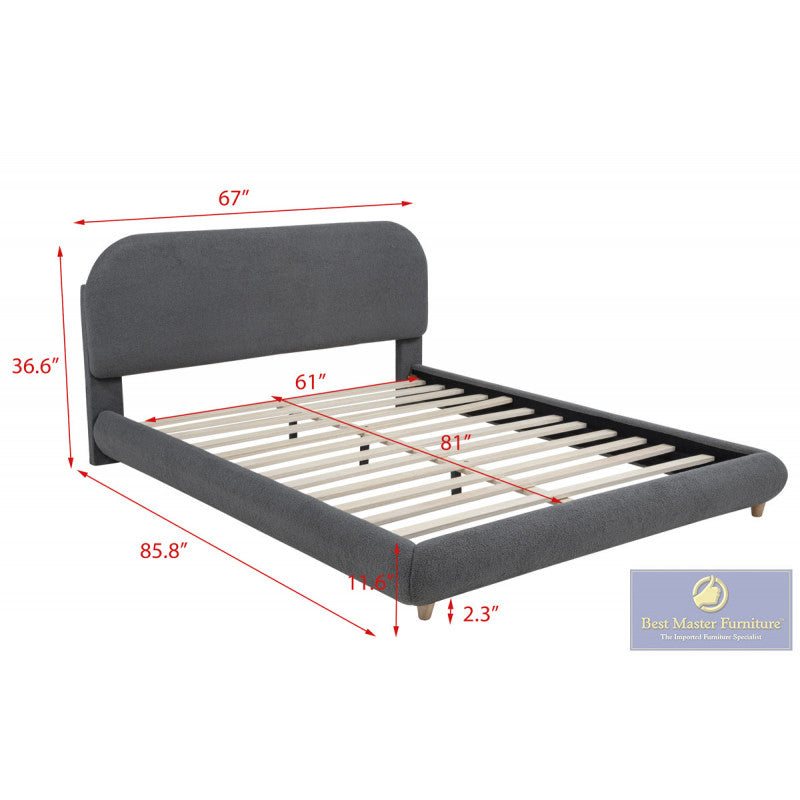 Modern Curved Headboard Queen Platform Bed in Grey color fabric