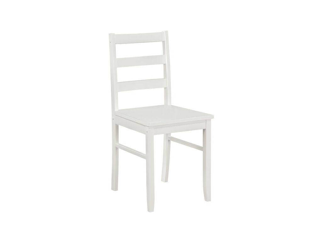 The Lavinia 5-Piece Dining Set, a stylish and functional addition to your dining area. This set comprises a rectangular table and four side chairs, each designed with a classic white finish to complement any decor. The table offers a compact space for dining or entertaining, while the chairs provide ergonomic support and a touch of sophistication with their ladder backrests. Whether you're enjoying a cozy family dinner or hosting guests, this dining set offers the perfect setting to create lasting memories. Upgrade your dining space today with the Lavinia Dining Set and experience the joy of dining in style and comfort.