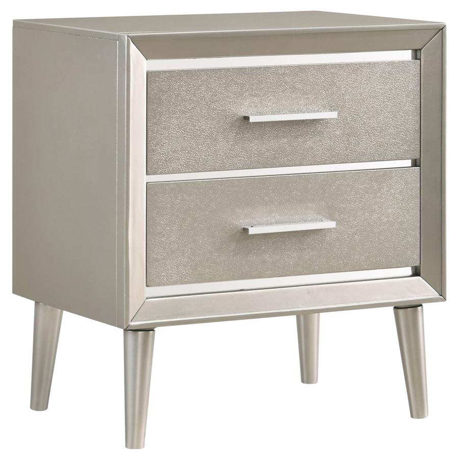 Ramon 3-piece Queen Panel Bedroom Set Metallic Sterling Set includes Queen Bed, Dresser, 1 Nightstand * Round tapered wooden legs and wide metal hardware speak to the mid-century modern elements of this collection |