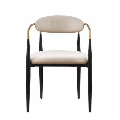 Modern Barrel Chair, Velvet Upholstered Accent Side Chair with Arms Comfy Makeup Vanity Chair, Dining Living Room Kitchen Chair, Beige