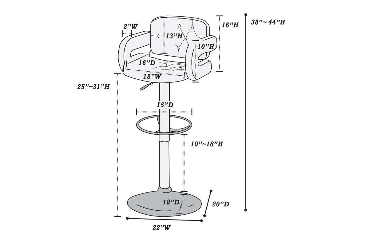 Dimensions 22" x 20" x 38"~44"H; Seat 25"~31"H