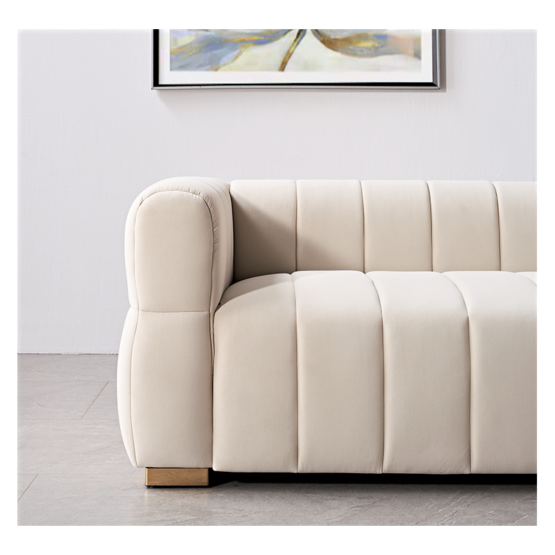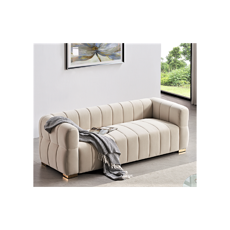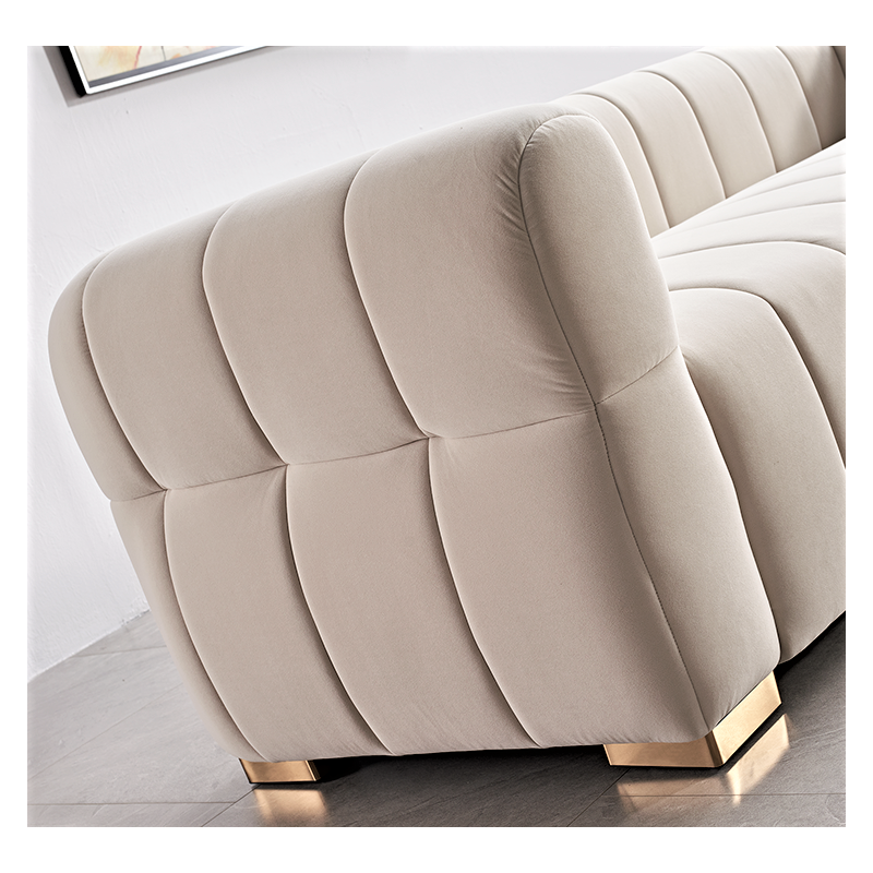 This modern sofa is here dressed in a very strong and fashioned Velvet fabric, unique corner design, and stylish appearance, all these make the sofa so different from others. It must be the icing on the cake in your room and would add a touch of fashion to your decor. Minimalist vibes, maximum impact. this lounge-friendly piece is the definition of cool without trying too hard. Beautifully styled andconsciously craftedusing materials,makes a welcome addition to any living space. a clean Soft velvet. Fabric upholstery imparts timeless style, while high-density foam creates luxuriously comfortable seating ,This stunning sofa with two accent pillows. boasts loose back cushions to showcase either details,Complete your living room decor with these chic seating options.
